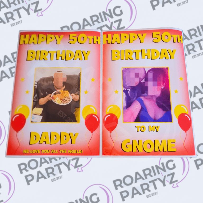 Please ensure all the information is correct as it will be printed exactly how it is received. It is the responsibility of the customer to ensure pictures used will be clear and the correct size. We accept no responsibility for blurred or stretched image